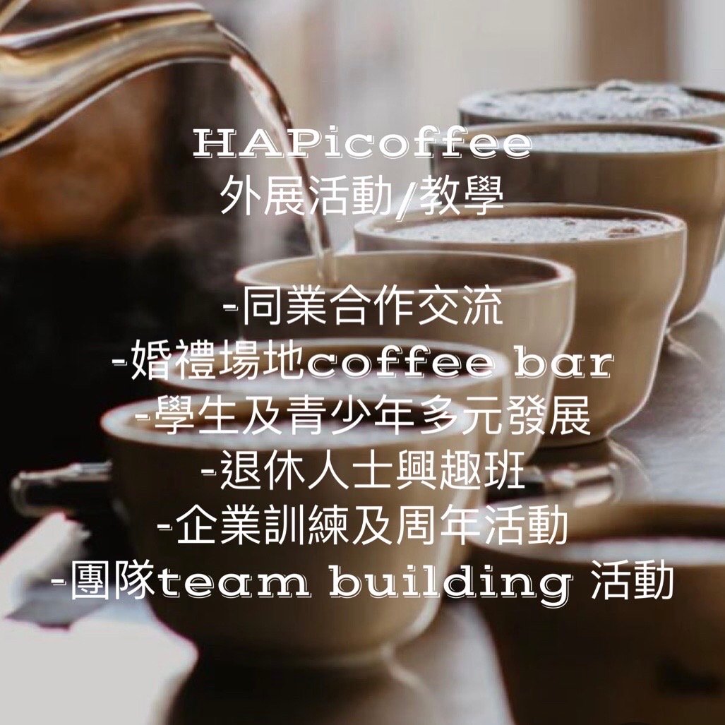 HAPicoffee 外展活動/教學 -同業合作交流 -婚禮場地coffee bar -學生及青少年多元發展 -退休人士興趣班 -企業訓練及周年活動 -團隊team building 活動 歡迎inbox 資料報價 預約見面討論活動內容 email :