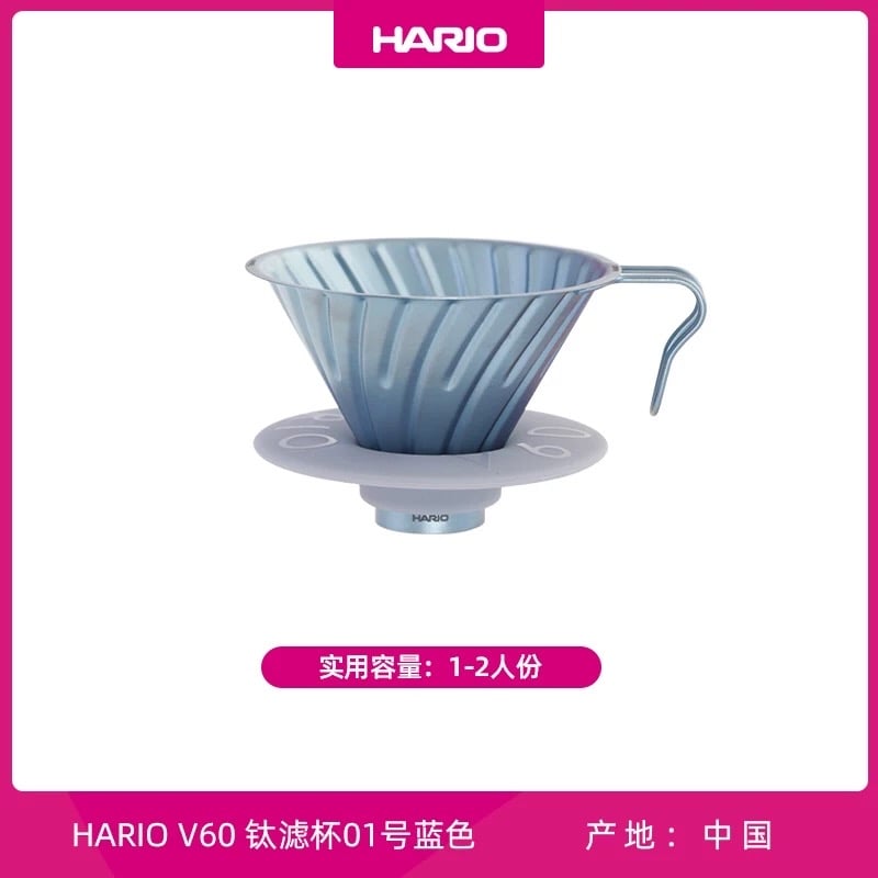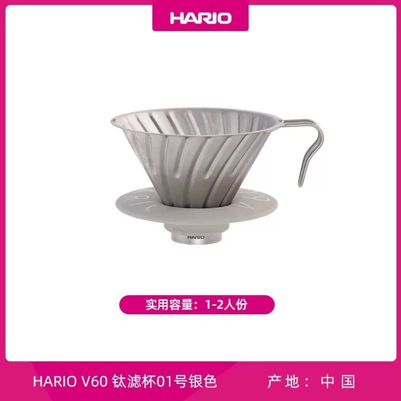 Hario V60 Titanium Dripper 鈦濾杯 Hario 鈦金屬系列,“鈦”級進化,輕量上線。 * “鈦”輕盈,比不銹鋼更輕 * “鈦”純淨,抗腐蝕抗菌無金屬異味 * “鈦”耐熱,1688攝氏度熔點 * “鈦”安心,醫用級鈦金屬安全無毒 輕盈便攜,戶外咖啡無負擔 比不銹鋼更輕,方便攜帶與日常使用。解決戶外沖泡器具笨重的問題,讓你隨時隨地輕鬆享受咖啡。 耐熱耐用,安全又可靠 1688°C熔點的醫用級鈦金屬,耐高溫且無毒,穩定環保。消除高溫沖煮的安全顧慮,耐用設計長伴你的咖啡時光。 純淨無味,保留咖啡原味 鈦金屬抗腐蝕抗菌,無金屬異味與咖啡殘留,保持純淨口感。告別金屬味干擾,確保每杯咖啡風味純正、清爽。 Made in China
